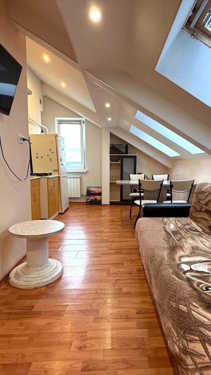 В квартире просторная кухня-гостиная и две спальни совмещенный сан.