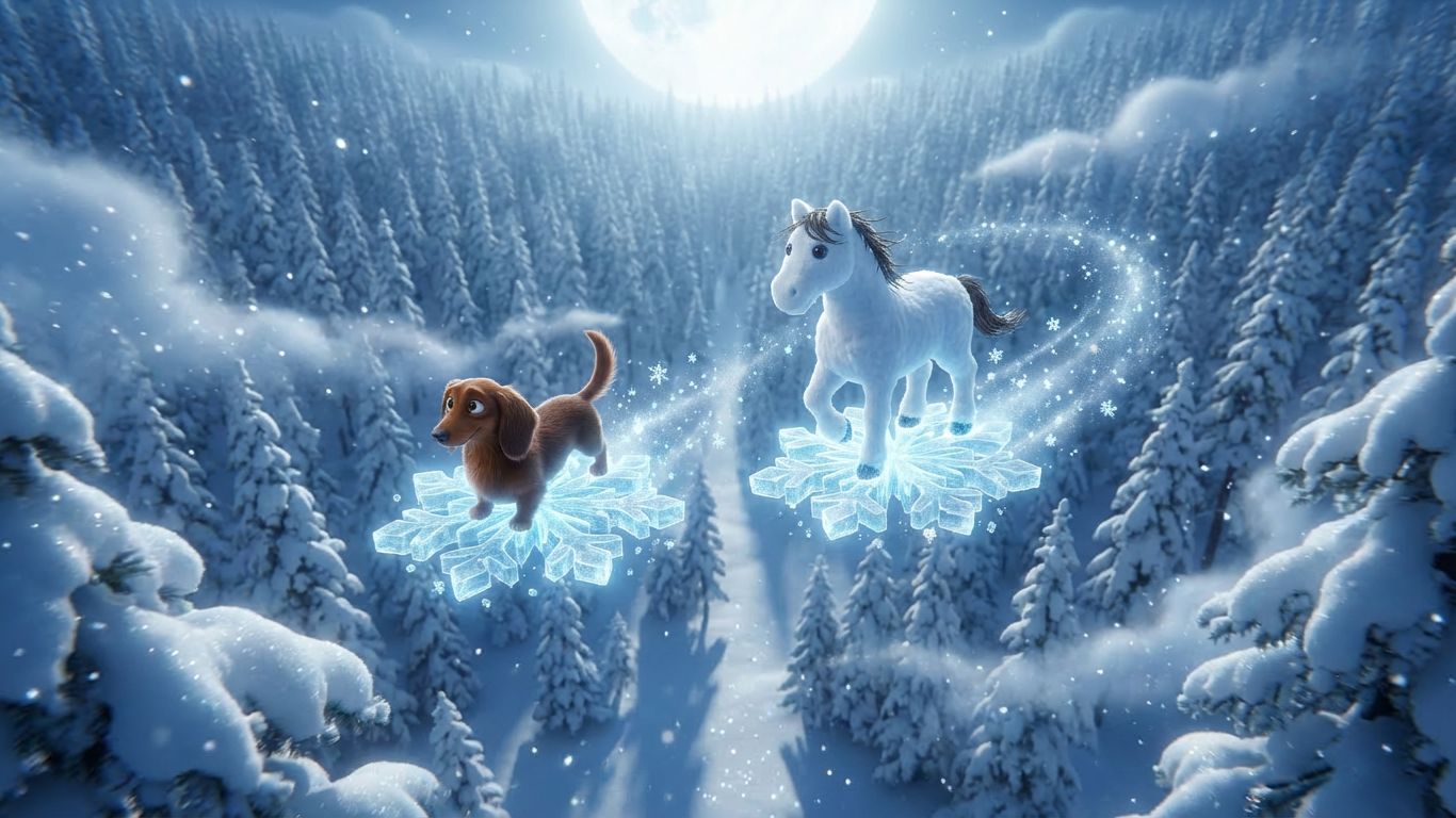 Неожиданно снежное создание оживает и вместе они отправляются в путешествие по волшебному лесу где деревья шепчут тайны а снег хранит память о чудесах.