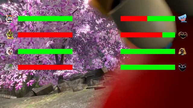 In this FNAF healthbar animation all the characters from Poppy Playtime Chapter 3 are up against the FNAF Security Breach Animatronics.