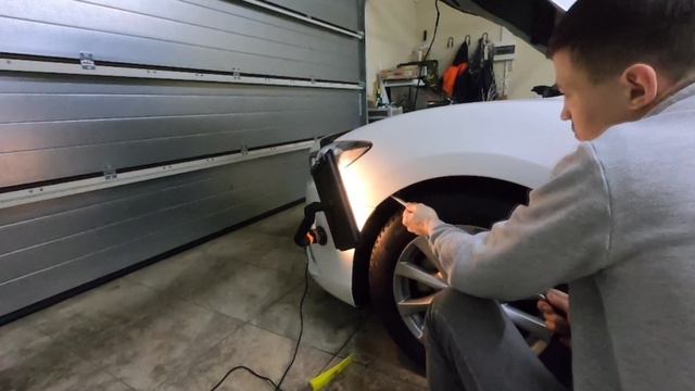 Удаление вмятины на крыле Mazda 3 по времени около трех часов вытягиваю объем и дорабатываю крючками