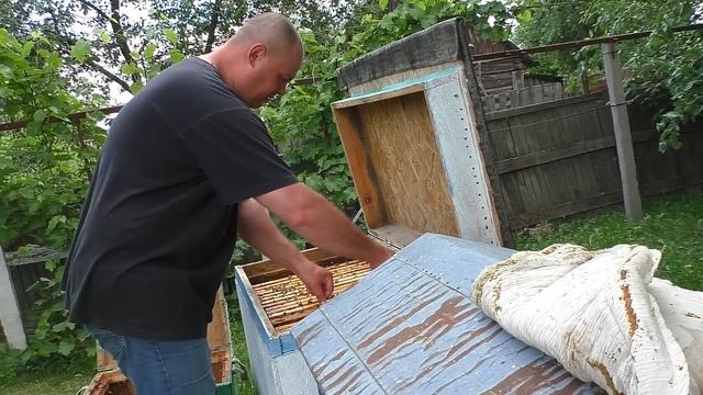 Делаю шоковую терапию роевым пчёлам.