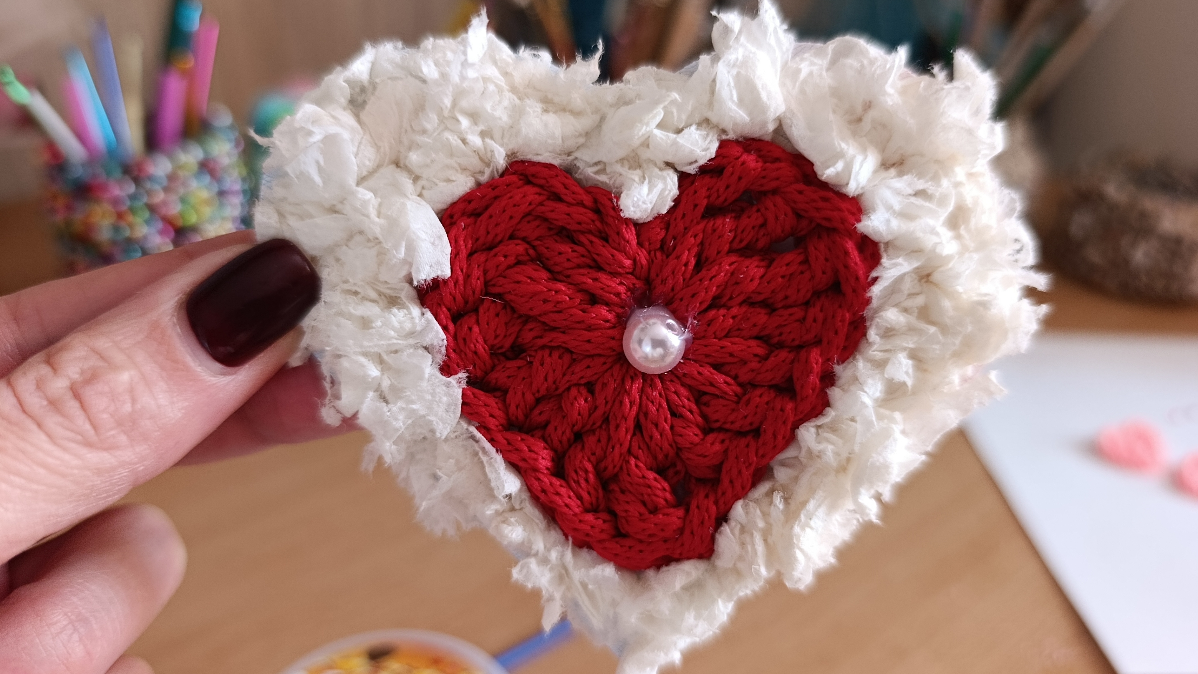 Приклеила бусинку в центр сердечка.