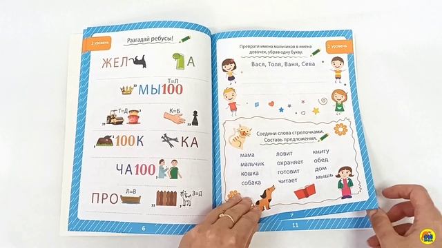 Целых 85 ребусов и заданий ждут малыша под красочной обложкой! В брошюрах четыре уровня сложности правила решения ребусов вы найдёте на первой странице а в конце сможете увидеть ответы на все задания.