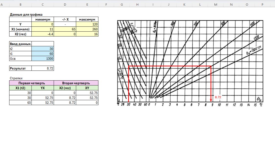 аппроксимация интерполяция оцифровка оцифровканомограм оцифровкаНТД VBA Excel энергетика