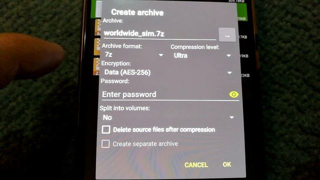 How to compress files in 7zip on android phones?