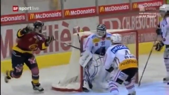 Невероятный гол из-за ворот забил Thomas Déruns в финале плей-офф Швейцарской хоккейной лиги