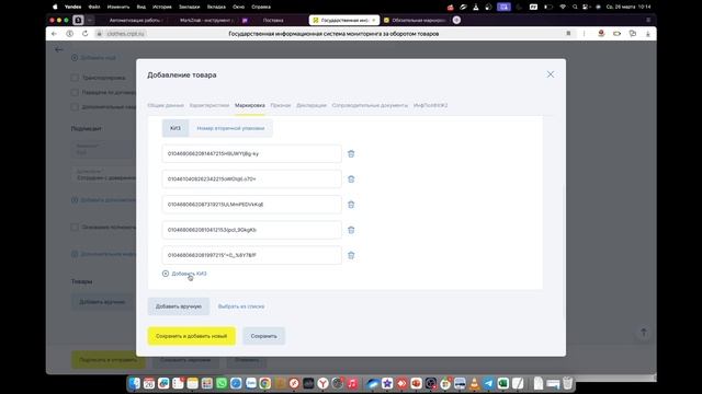 10:47 - Добавление товаров и КИЗ вручную.