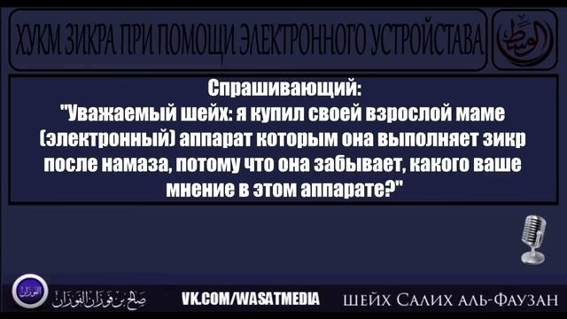 ⇒Расскажите об этом видео Хукм зикра при помощи электронного устройства шейх Фаузан, своим друзьям в социальных сетях.
