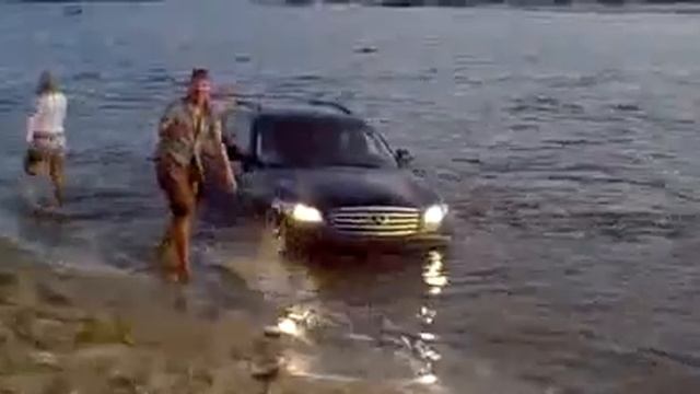 немного другой ракурс. Водила накуренный или под чем-то другим - вел себя неадекватно кричал что еще себе такую купит сел на капот и ждал подмогу. Приехал L200 - загруз в песке. Вызвали пожарный зил - вытянул.