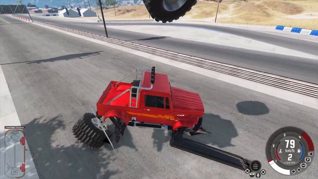 Последствие удара разрыв осей и деформация кузова.