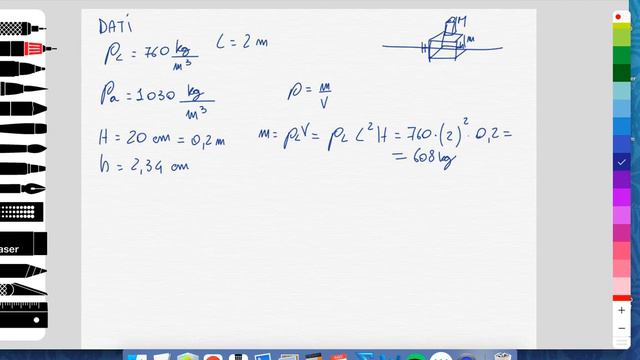 Svolgimento dellesercizio numero 3 dellesame scritto di Fisica del 21022020 per la Laurea Magistrale in Medicina e Chirurgia dellUniversità di Palermo SPINTA IDROSTATICA - PRINCIPIO DI ARCHIMEDE
