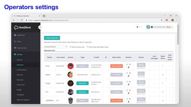 In this video we briefly describe the most interesting and useful features of our chat center.