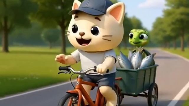 История кота который катается на велосипеде с рыбой